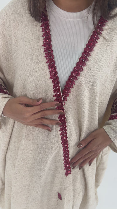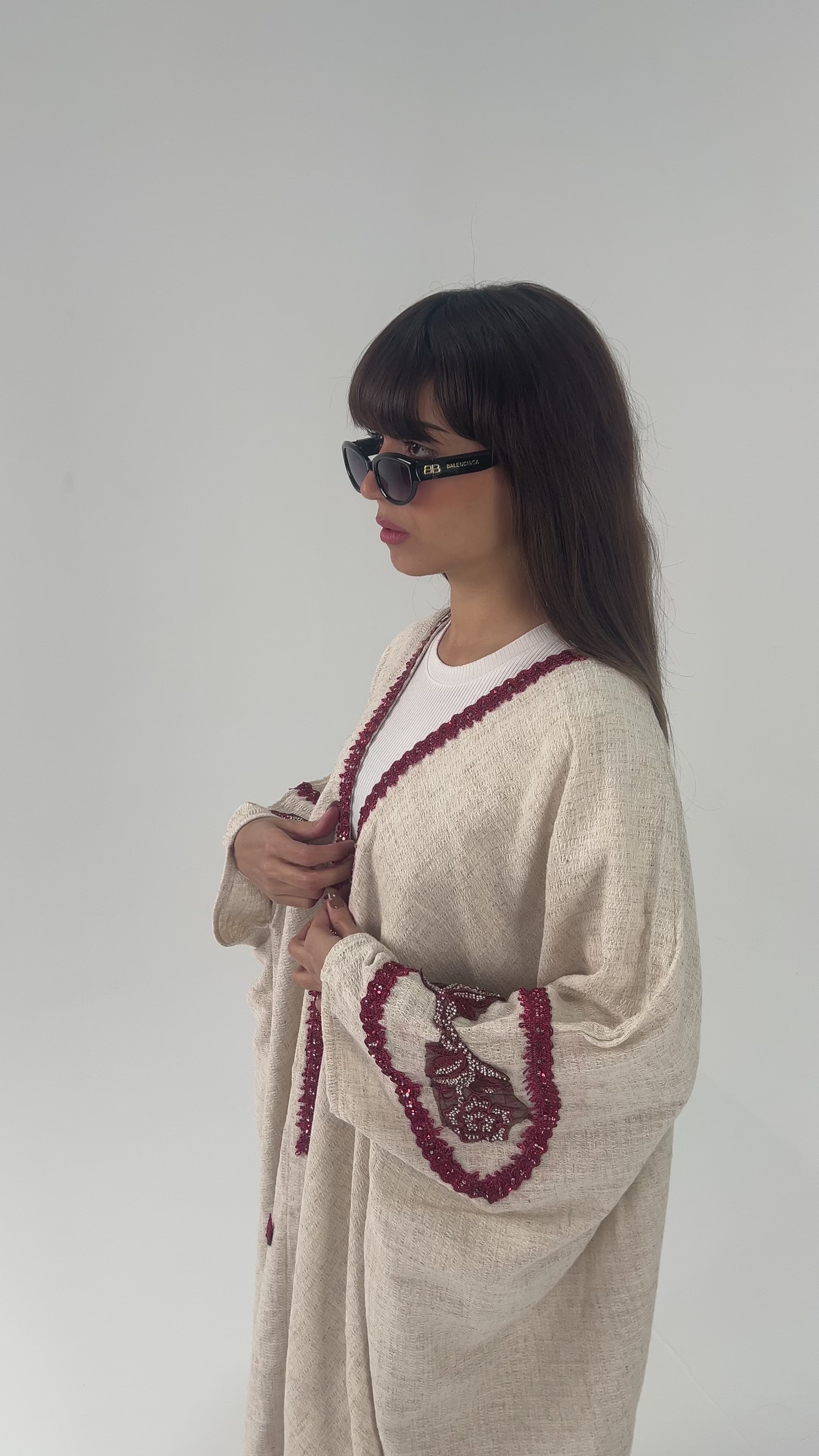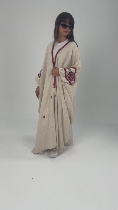 Urbantique - Beige Kaftan Embroidered in Burgundy