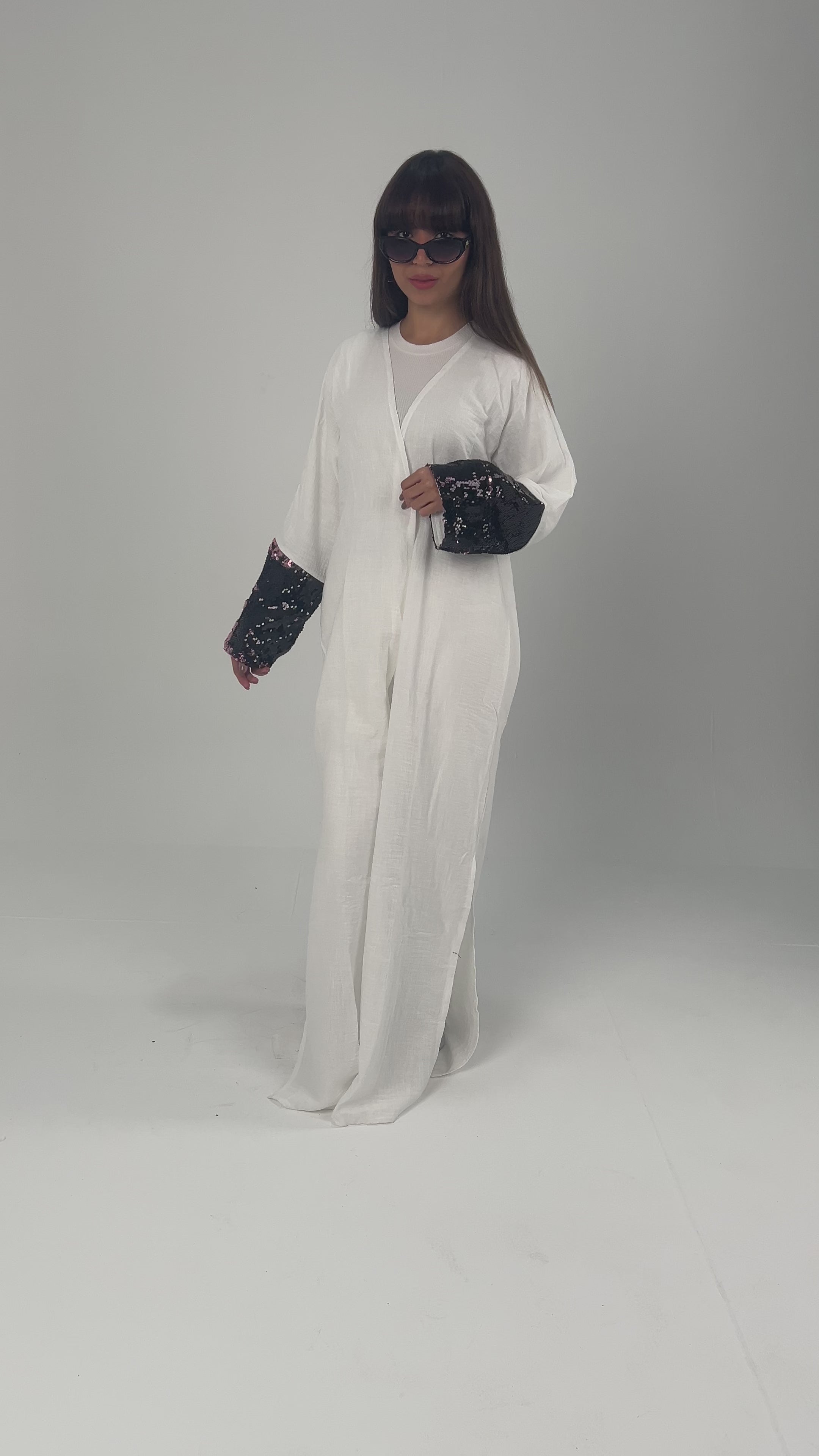 Urbantique - White Moroccan Kaftan Embroidered with Sequins