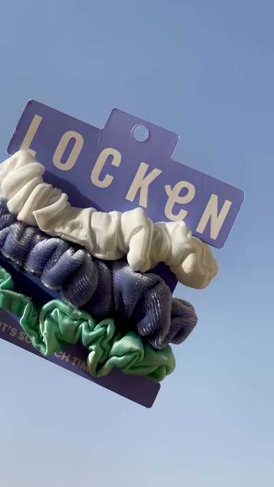 Elevate your hair game with our exclusive Scrunchie Trio set, featuring three premium scrunchies: two in sumptuous silk and one in velvety Locken Purple. Designed for both style and comfort, these scrunchies are perfect for every occasion, from casual outings to elegant events.